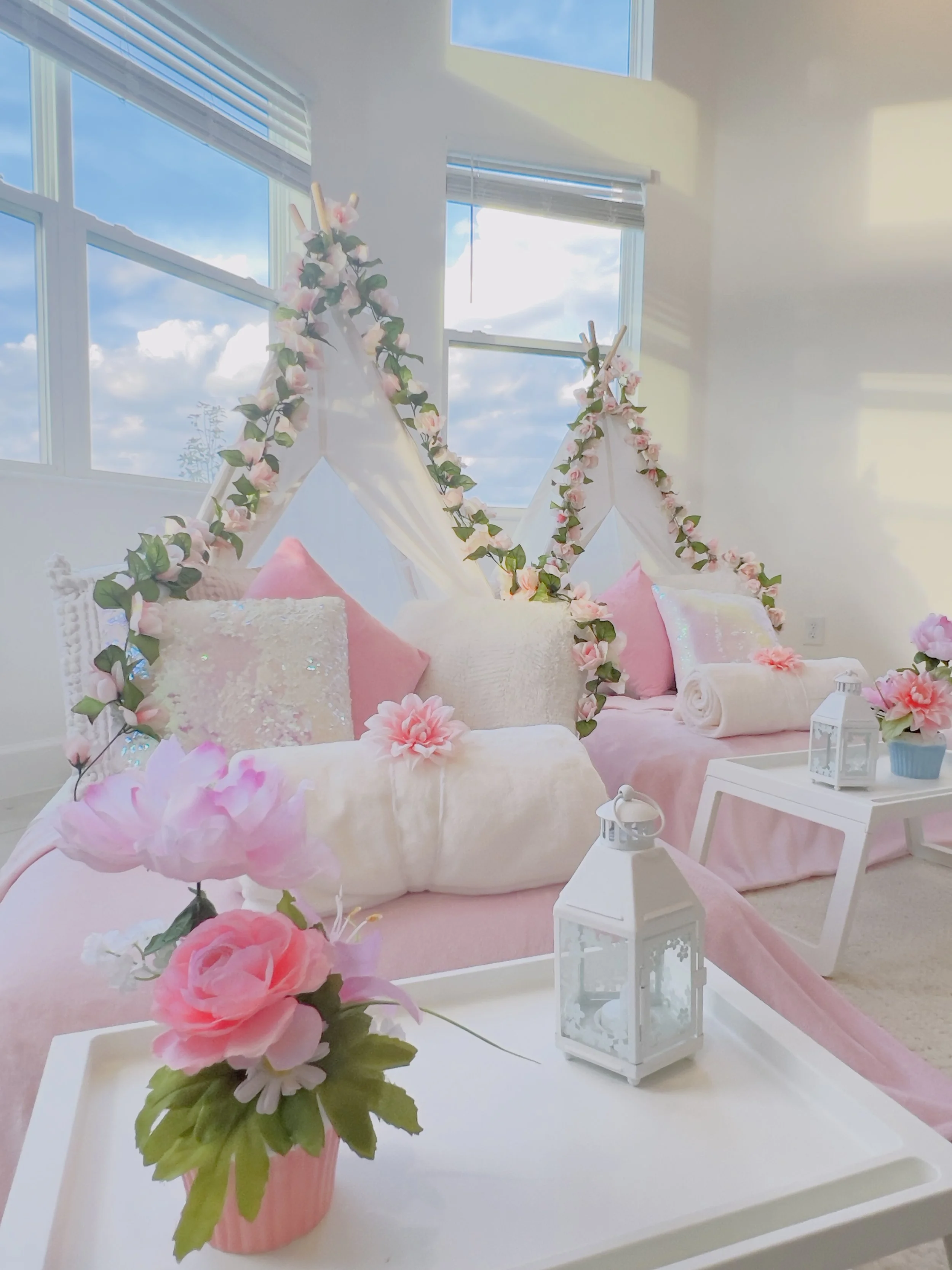 “Transform sleepovers into magical adventures with our cozy teepee setups. Styled with fun themes and special touches, we create unforgettable nights filled with comfort, laughter, and memories.”