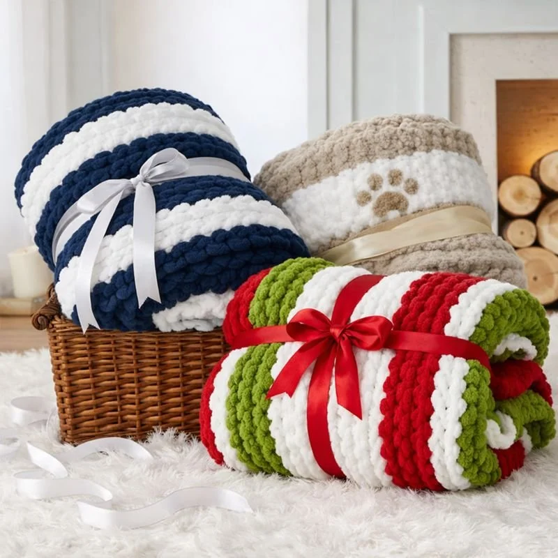 Our Signature Handmade Collection features thoughtfully crafted chunky knit pieces designed for comfort and cozy celebrations. From custom blankets created for sleepover birthdays to meaningful keepsakes made to keep, each item is handcrafted with care. Every piece is made to order using premium materials and curated color options. Designed to be enjoyed long after the celebration ends, these pieces bring warmth to everyday moments, homes, and pets alike.